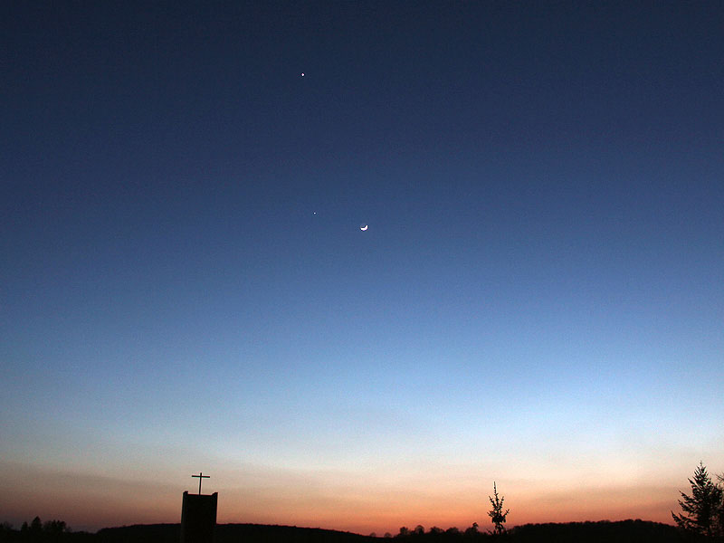 12 Abendstimmung über den Dächern von Lonsee mit Mond, Venus und Jupiter, 25.03.2012 gegen 20:19. |