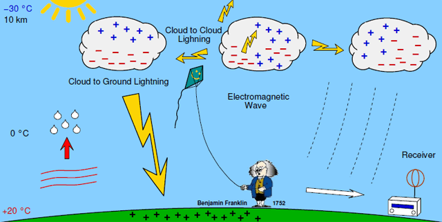 Die vom Blitz erzeugte elektromagnetische Signatur wird ausgewertet und mit einem Zeitstempel versehen zu einem zentralen Server geschickt.
